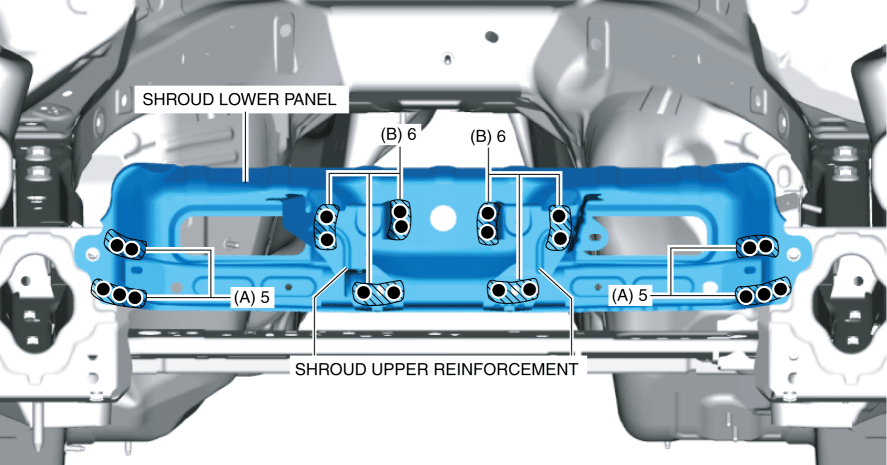 When removing the shroud upper reinforcement separately, drill the 12 locations indicated by (B).