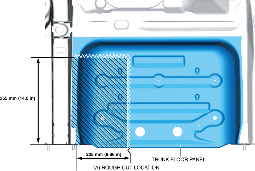 2. Rough cut the location indicated by (A) shown in the figure, then remove the part of trunk floor panel.