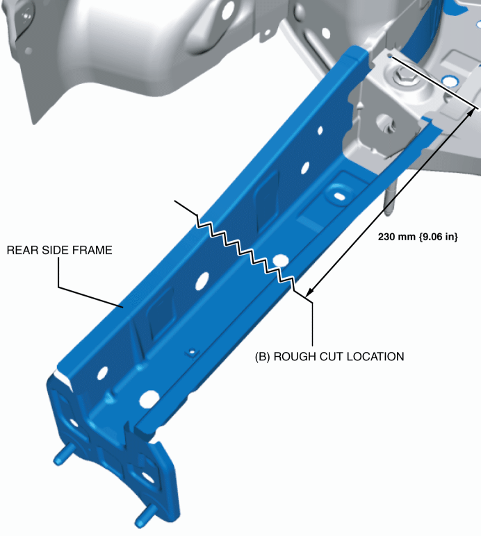 4. Rough cut and remove the damaged part of the rear side frame.< Previous Next >