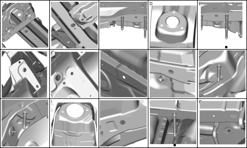 Rear side frame (rear) datum hole |