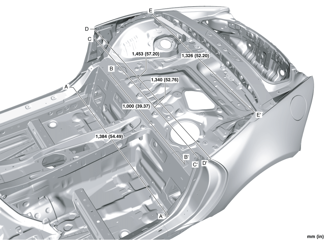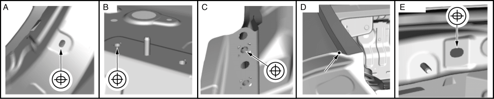 Side sill (inner, rear) datum hole |