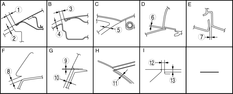 Minimum values (mm ) |