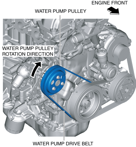 1. The water pump pulley rotates by obtaining drive force from the engine via the drive belt.