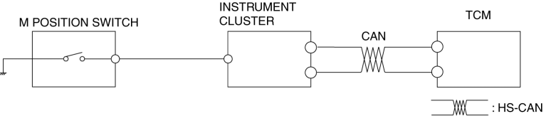 The M position switch signal is sent to the TCM via CAN, and is used for manual shift control and engine-transmission integration control.