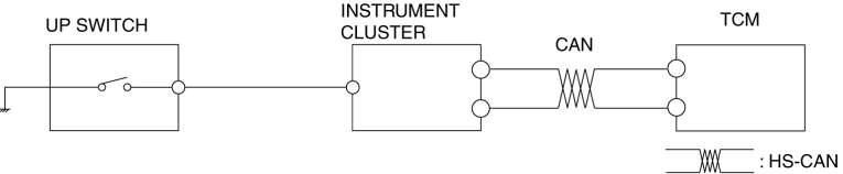The up switch signal is sent to the TCM via CAN and is used for manual shift control and engine-transmission integration control.