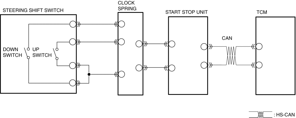 Steering shift switch signal sends to the TCM via the CAN and is used for the manual shift control and engine-transmission integration control.