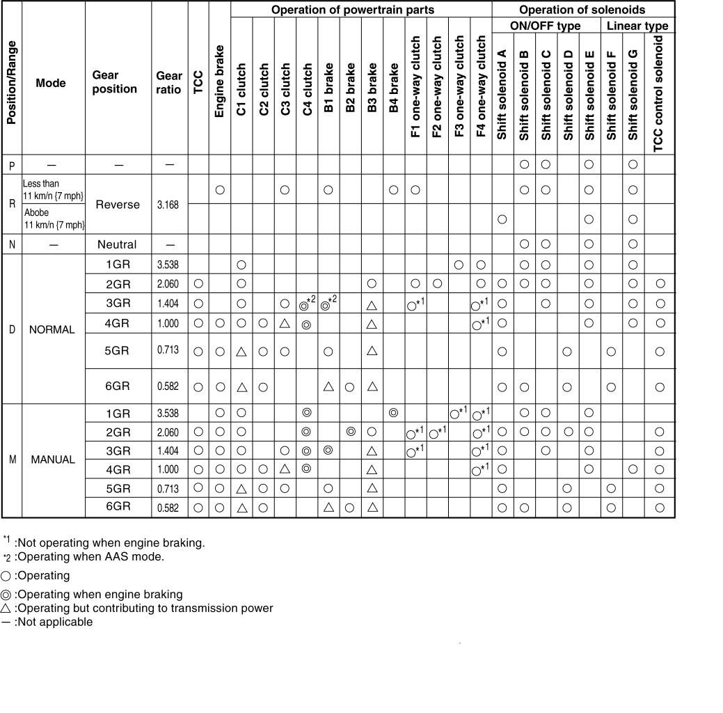Automatic transmission operation chart