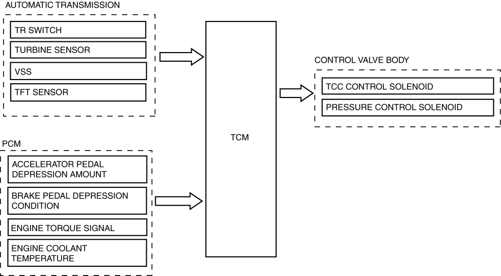 A current signal is sent from the TCM to the TCC control solenoid during TCC engagement. At the same time, the TCC piston engagement pressure is gradually increased.