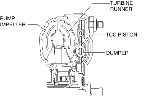 Control is performed using a TCC control solenoid. The TCC control solenoid is linearly turned ON and OFF, the TCC clutch inside the torque converter is operated, and the pump impeller and turbine runner are connected. This enables coupling of the engine and the automatic transmission. Engine output is connected directly to the automatic transmission, eliminating transmission loss and enhancing fuel economy.
