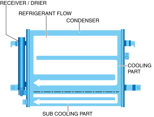 The multi-flow type (sub-cooling type) is integrated with the condenser and the receiver/drier.