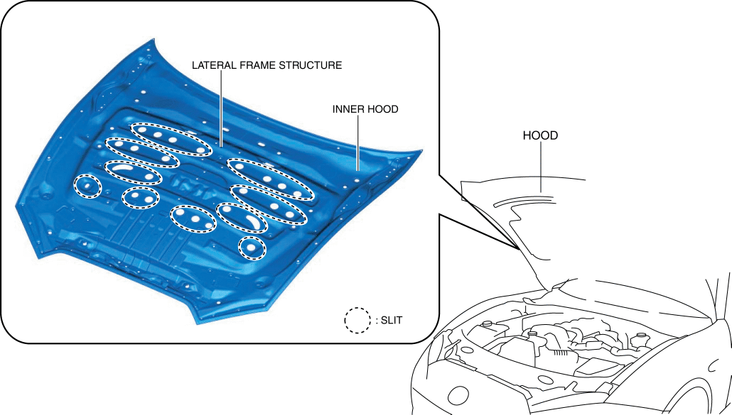 A lateral frame structure has been adopted for the hood to reduce injury to pedestrians in a collision.