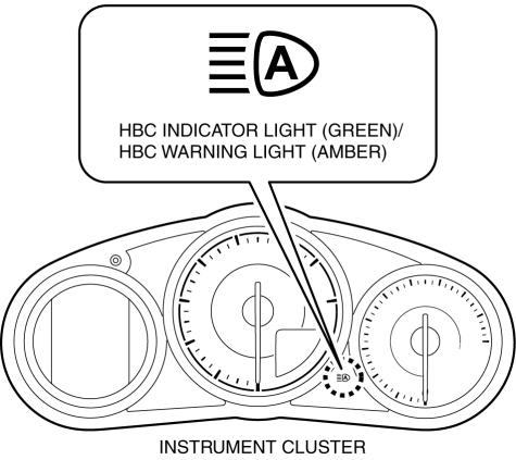 The HBC indicator light (green) and HBC warning light (amber) are built into the instrument cluster.