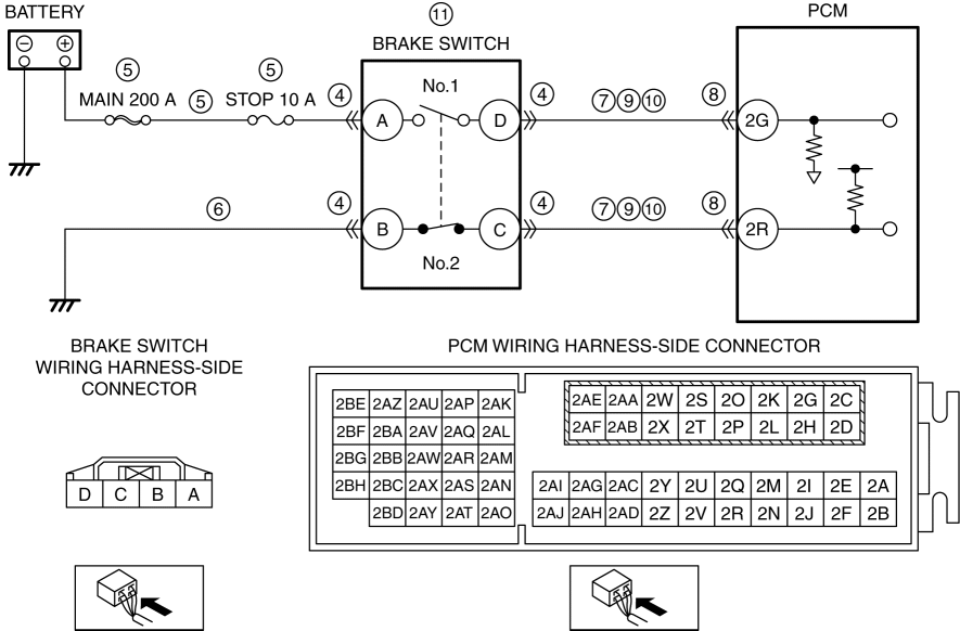 INSPECT BRAKE SWITCH NO.2 GROUND CIRCUIT FOR OPEN CIRCUIT
