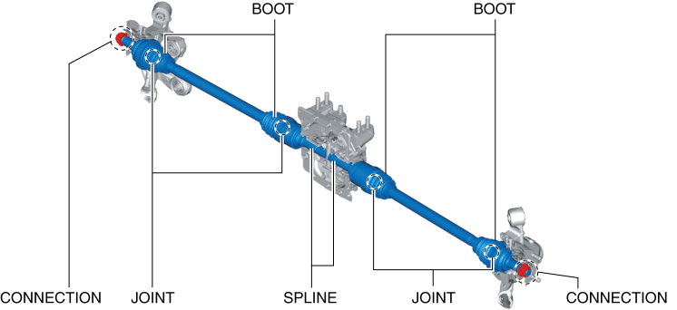 If there is any malfunction, tighten or replace the applicable part. (See REAR DRIVE SHAFT REMOVAL/INSTALLATION.)