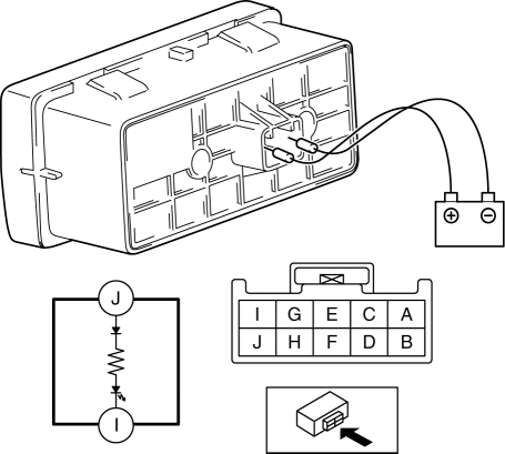 3. Apply battery positive voltage to cluster switch terminal J, and connect terminal I to ground.