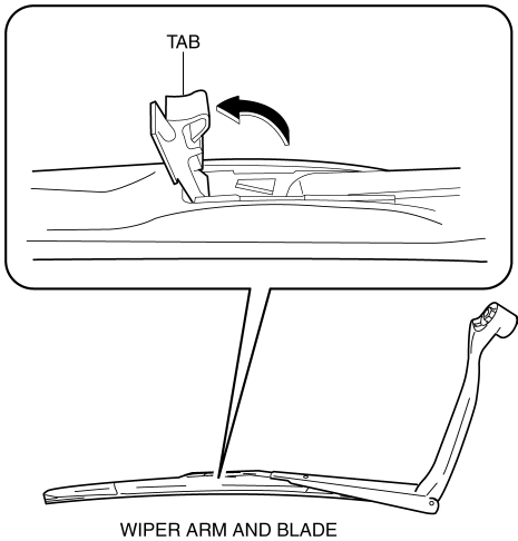 1. Pull the wiper blade tab up in the direction of the arrow shown in the figure.